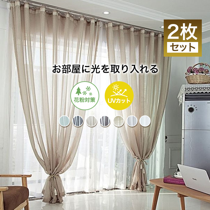 【2枚組】おしゃれ カーテン リネン·綿麻 和室インテリアにも合わせやすい 遮像 おしゃれ uvカットレースカーテンセット 2倍ヒダ