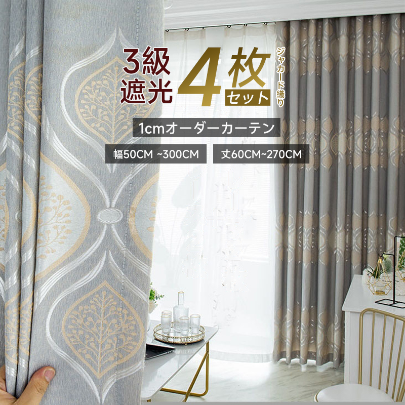 【4枚組】 高級感のあるジャカード織り おしゃれ 定番人気 激安価 遮光 断熱防音 セットカーテン 2倍ヒダ
