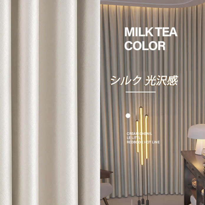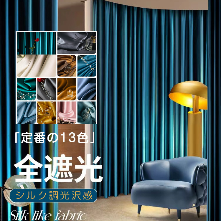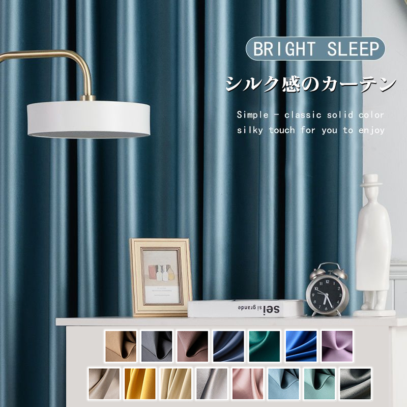 光沢感 シルク モダン おしゃれ 遮光カーテン 厚地 無地 保温 防音断熱 省エネ 厚手 無地 ドレープカーテン 2倍ヒダ