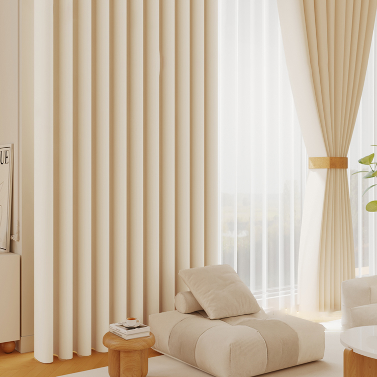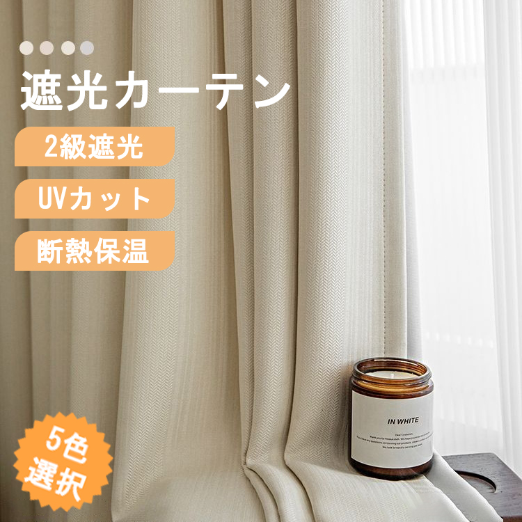 クリーム系 遮光 カーテン 全5色 おしゃれ 2級遮光 シンプル 厚地 断熱保温 UVカット 防音 ドレープカーテン 2倍ヒダ