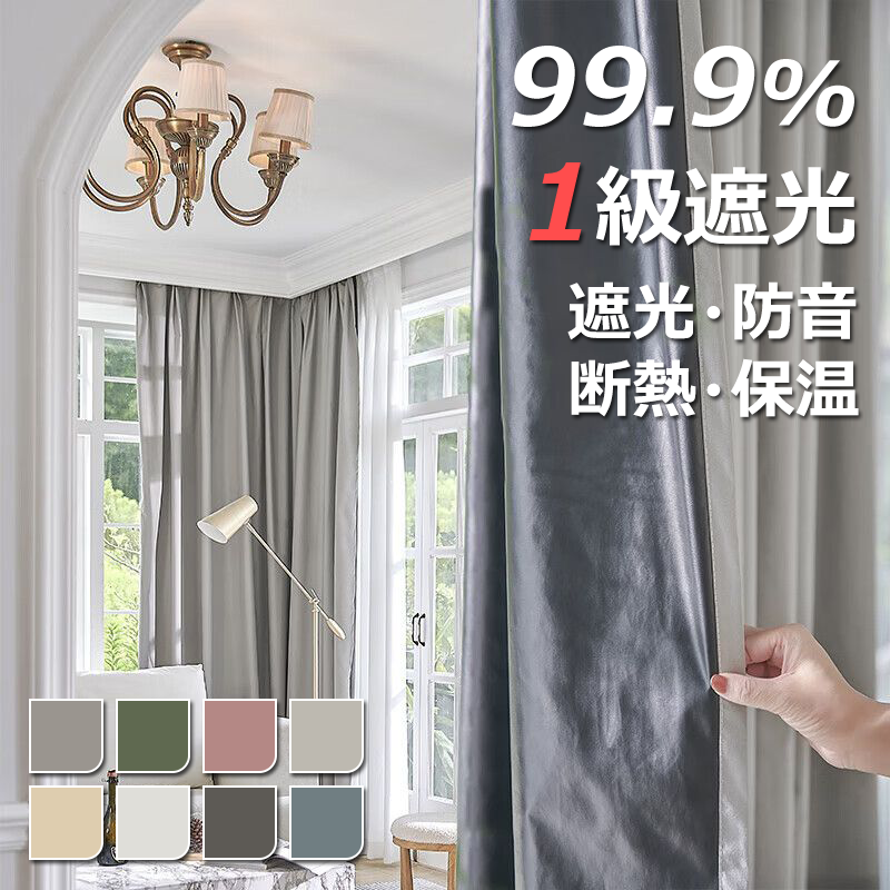 遮光カーテン 遮光1級 遮熱 保温 防音 無地 光沢感ある 12色展開 精密縫製 UVカット リビング 寝室 ドレープカーテン 2倍ヒダ