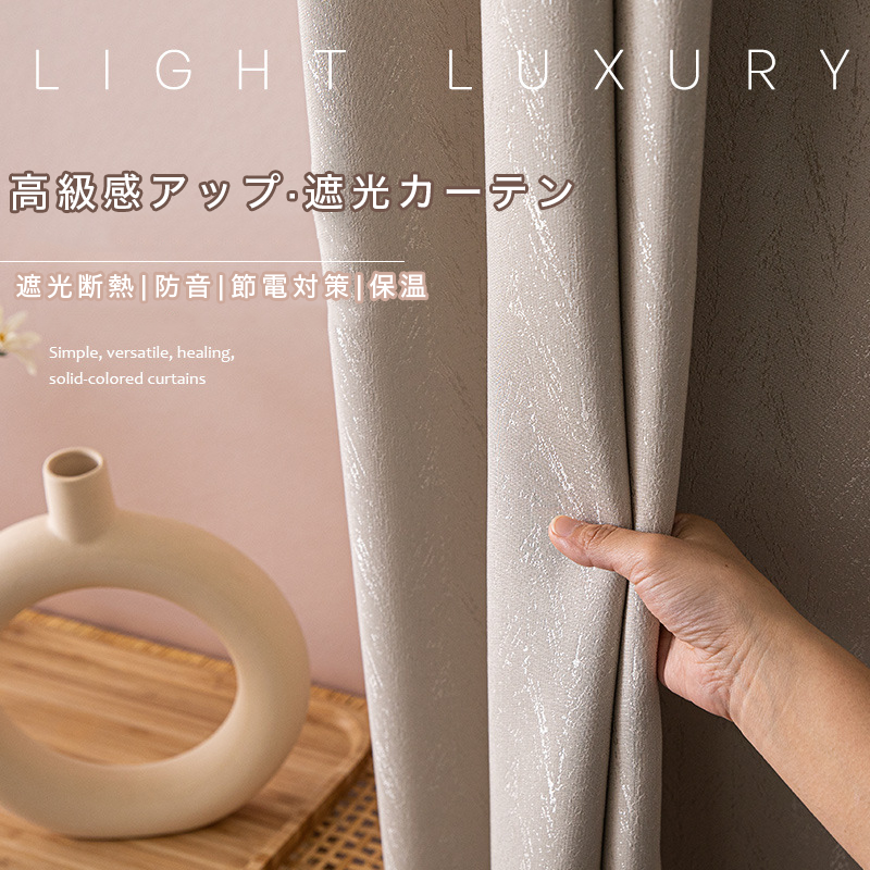 くすみカラー キラキラ 輝かしい 無地 配色 1級遮光 断熱 保温 昼夜目隠し 洗濯機対応 リビング用 ドレープカーテン 2倍ヒダ