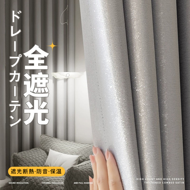 超目玉アイテム 超人気 6色 遮光 遮熱 保温 遮音 節電対策 省エネ 北欧 遮光カーテン キラキラ 光沢感 ドレープカーテン 2倍ヒダ