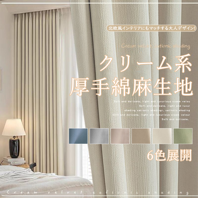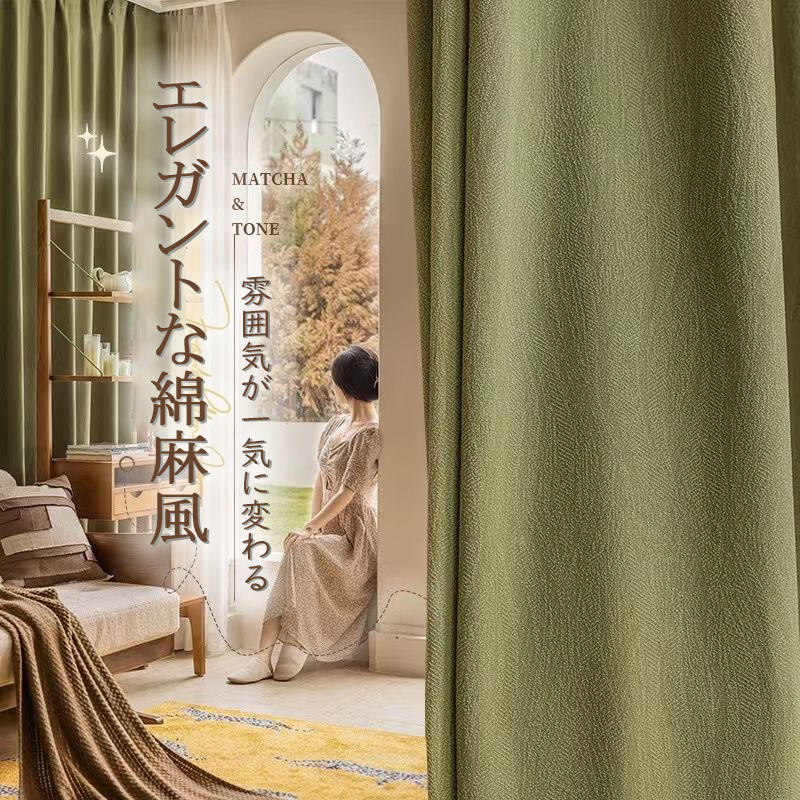 綿麻 2級遮光 厚地 断熱 防音 節電対策 ドレープ カーテン リビング 寝室 シンプル カーテン 2倍ヒダ