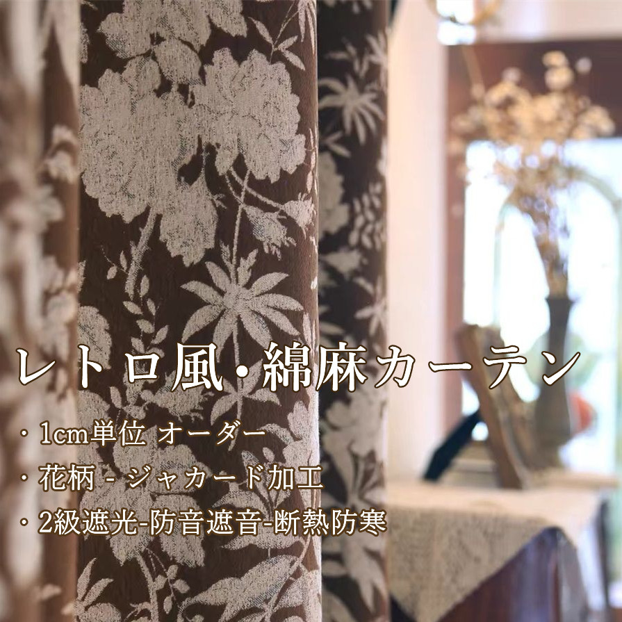 新居 癒し効果 高級 レトロ風 北欧 精密縫製 立体感 花柄デザイン 1cm単位 オーダー 遮光2級 防寒 断熱 保温 冷暖房効率UP ドレープ カーテン 2倍ヒダ