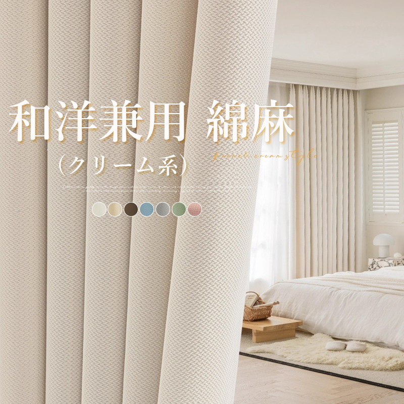 6色展開 精密縫製 品質重視 和洋兼用 無地 綿麻 遮光1級 光はしっかり遮断 遮熱保温 防音遮音 冷暖房効率UP 優れた垂れ感 ドレープカーテン 2倍ヒダ