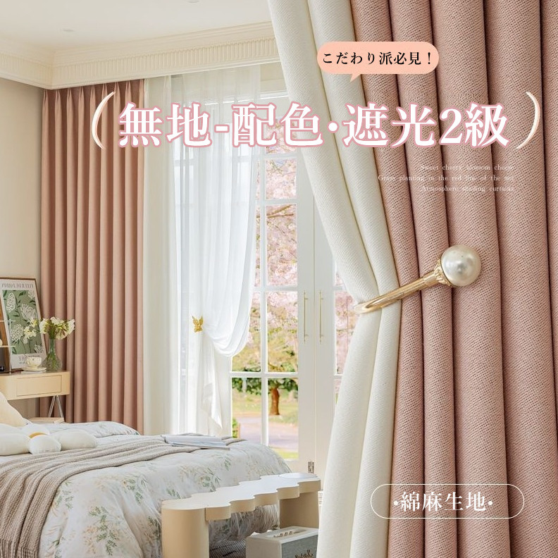 超人気 品質重視 7色展開 無地 厚地 綿麻 遮光1級 光はしっかり遮断 遮熱保温 防音遮音 冷暖房効率UP 優れた垂れ感 ドレープカーテン 2倍ヒダ