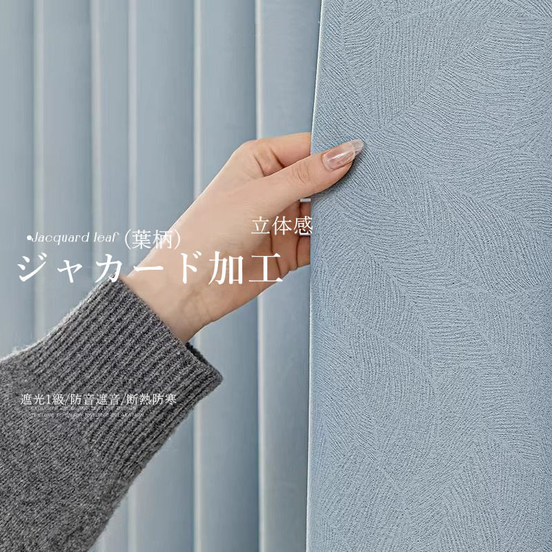 高級感 葉柄 ジャカード加工 1級遮光 防寒断熱 保温 厚地 防音遮音 オーダーサイズ 優れた垂れ感 安眠 おしゃれ UVカット ドレープカーテン 2倍ヒダ