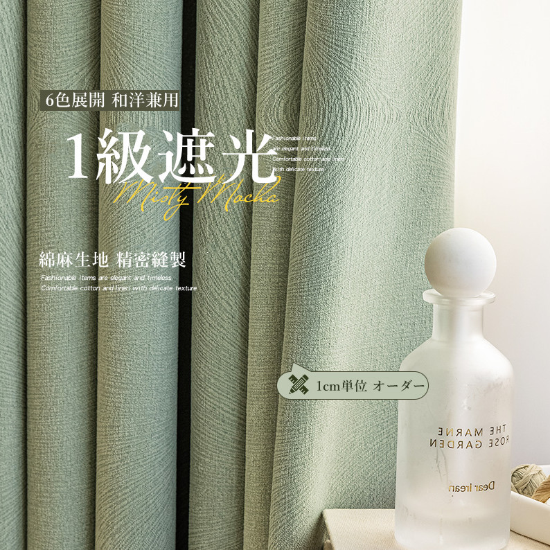 無地 和洋兼用 6色展開 綿麻 厚地 遮光1級 安眠 防寒 断熱 保温 冷暖房効率UP 優れた垂れ感 新居 高級感 1cm単位 オーダー ドレープ カーテン 2倍ヒダ