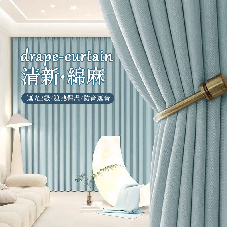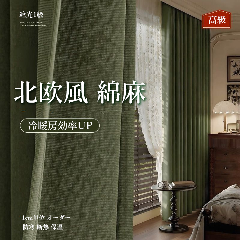 おしゃれ 5色展開 高級 綿麻カーテン 厚地 光はしっかり遮断 完全遮光 安眠 冷暖房効率UP 寒さ対策 防寒 断熱 保温 優れた垂れ感 オーダー ドレープ カーテン 2倍ヒダ