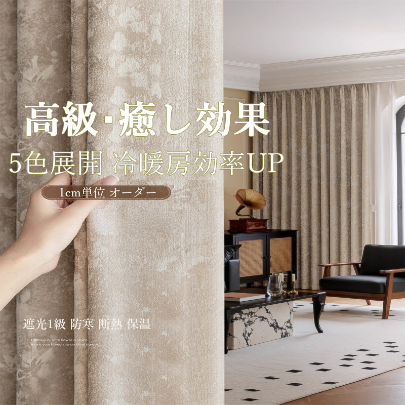 新生活 新居 1cm単位 オーダー 5色展開 高品質 高級 遮光カーテン 癒し効果 花柄 遮光1級 防寒 断熱 保温 冷暖房効率UP ドレープ カーテン 2倍ヒダ