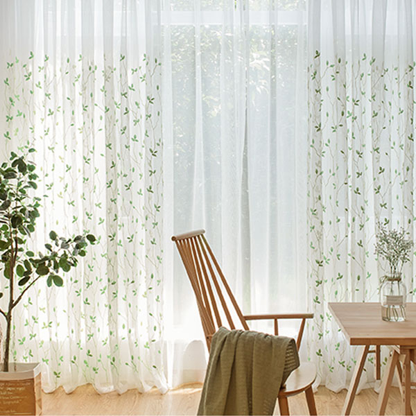 【レース】おしゃれ ボタニカル リーフ柄 ナチュラル 遮像 レースカーテン 2倍ヒダ