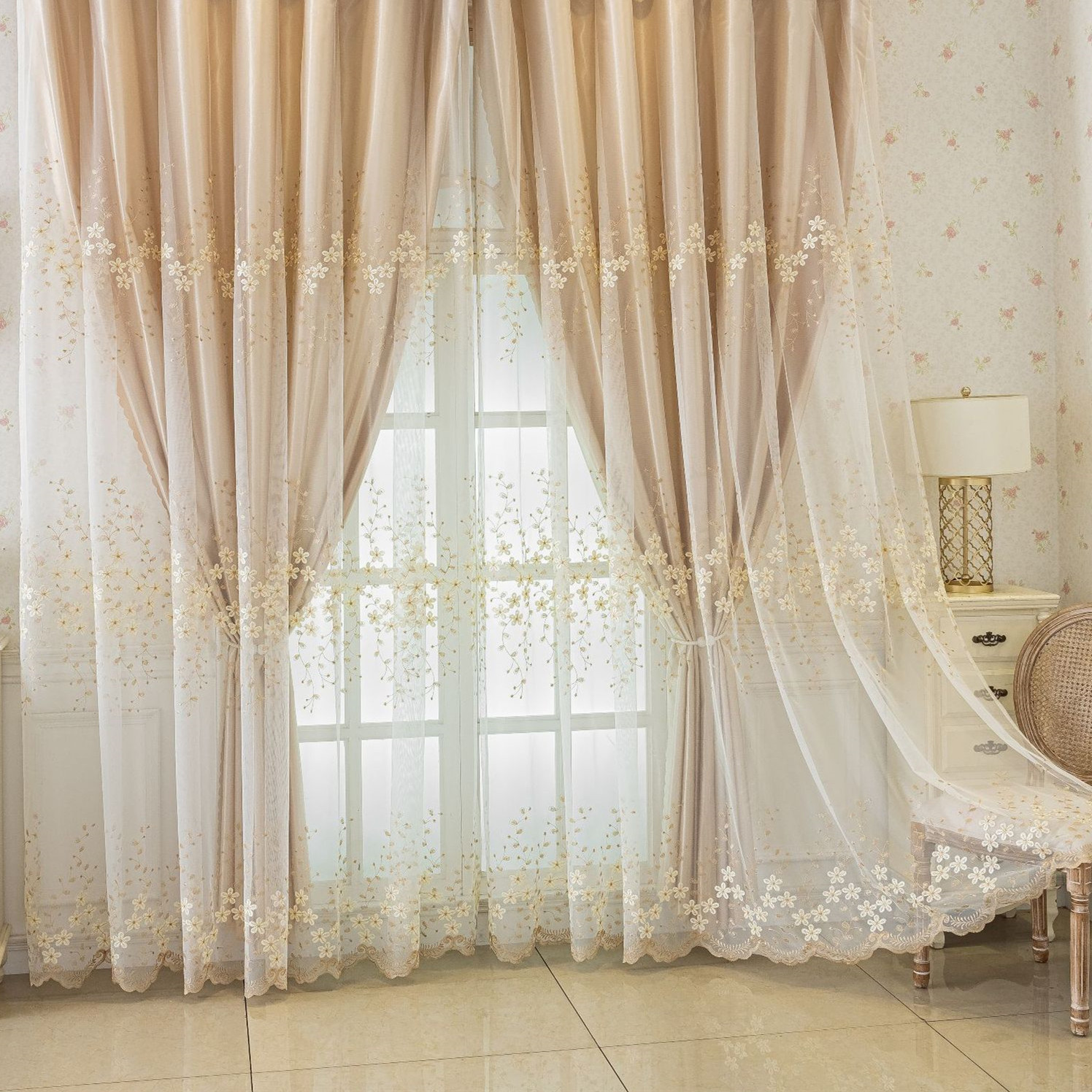 刺繍デザイン 2級遮光 遮光90% エレガント 遮熱保温 防寒 冷暖房効率UP 精密縫製 ドレープ&レース 一体型カーテン 2倍ヒダ