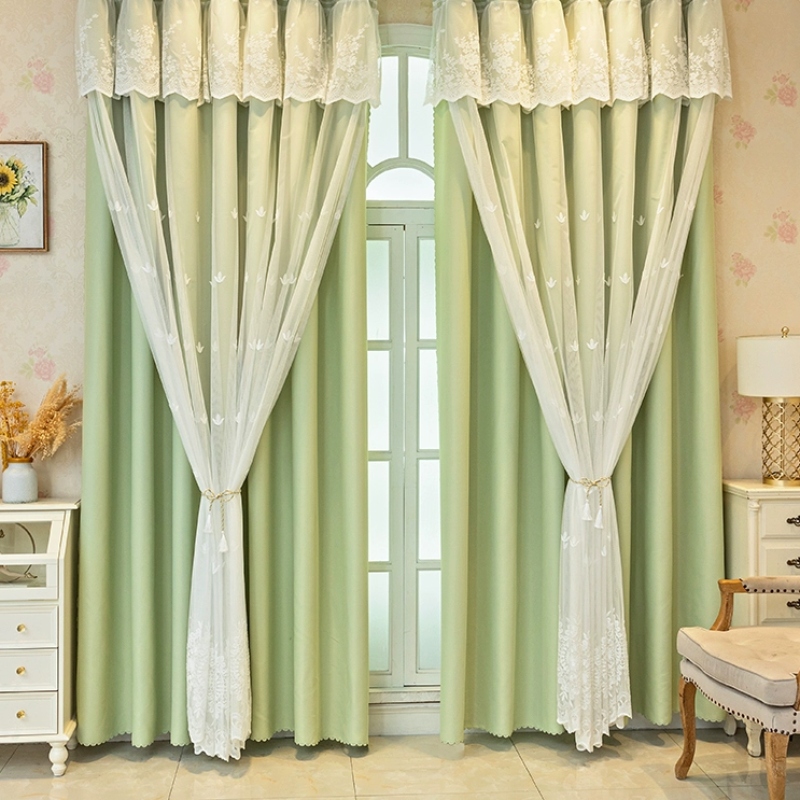寝室に適用 姫系 2重デザイン ドレープ&レース 遮光2級 防寒断熱 冷暖房効率UP 操作簡単 精密縫製 オーダー 一体型カーテン 2倍ヒダ