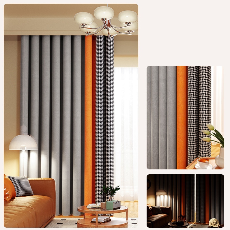 千鳥格子柄 切り替え 綿麻 配色 いい垂れ感 オーダーカーテン 遮光1級 防寒 保温 UVカット 遮熱 節電対策 リビング 寝室 シンプル 北欧風 厚地 ドレープカーテン 2倍ヒダ
