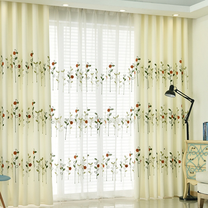 【2枚組】おしゃれ 可愛いカントリースタイル 花柄 田舎風 ドレープ+レース セットカーテン 2倍ヒダ