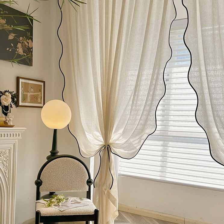 ins超人気 レトロ風 フランス風 天然素材 高機能レース リネンカーテン ふわふわで柔らかい 遮像 花粉対策 昼夜目隠し 自然光の調整 UVカット 透けにくい 採光 和室 おしゃれ オーダー レースカーテン 2倍ヒダ
