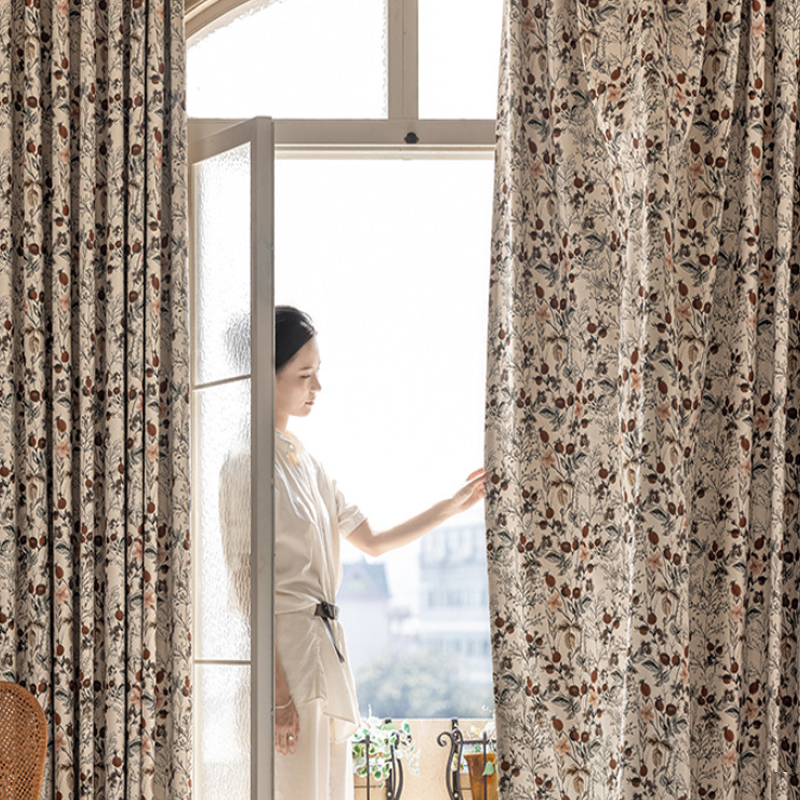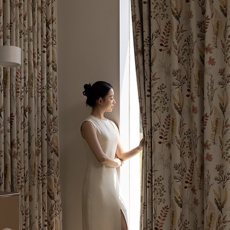 おしゃれ 高級感 形状記憶加工 癒し効果 花柄デザイン 遮光1級 防寒 断熱 保温 冷暖房効率UP 節電 防音 安眠 優れた垂れ感 オーダー ドレープ カーテン 2倍ヒダ