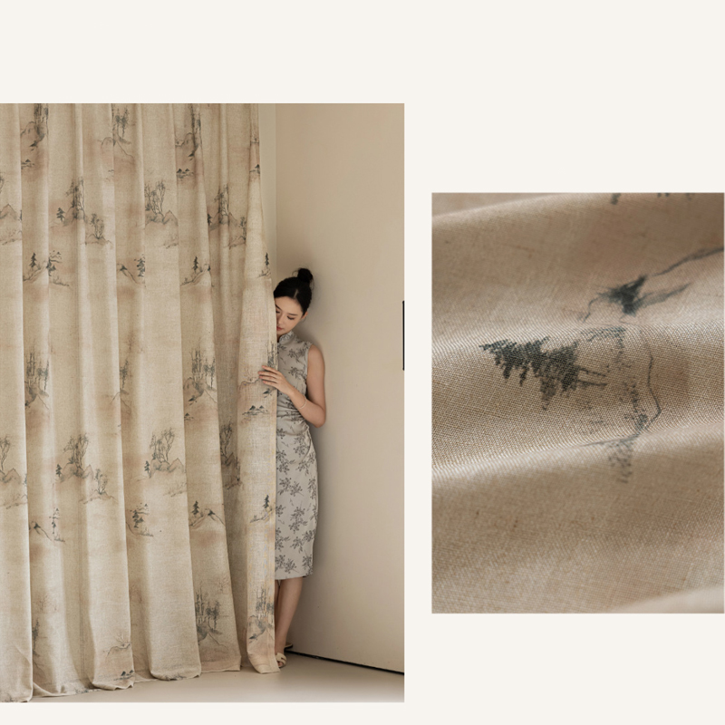 高級感 水墨画 リネンカーテン 高品質 透けにくい 遮像 プライバシー保護 UVカット 日焼け防止 採光 柔らかな肌触り 洗える オーダー レースカーテン 2倍ヒダ