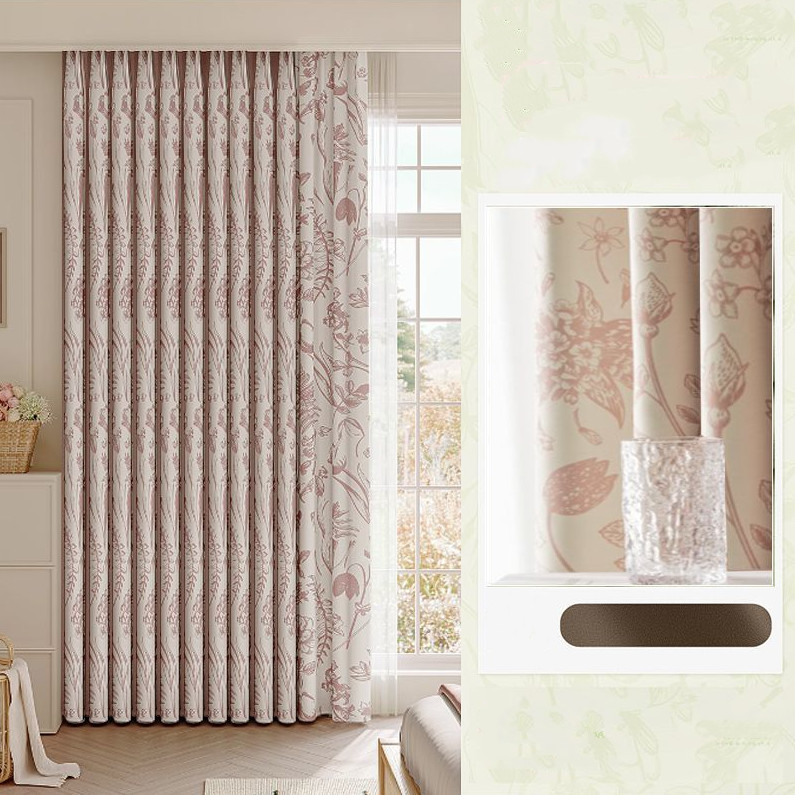 フランス風 レトロ風 癒し効果 花柄デザイン プリントデザイン 手触りが良い 1級遮光 断熱防寒 節電対策 厚地 優れた垂れ感 洗える 省エネ ドレープカーテン 2倍ヒダ