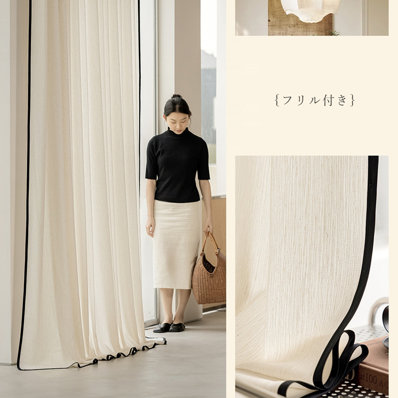 高級感 天然素材 癒し効果 リネンカーテン フリル付き 無地 和洋兼用 昼夜目隠し 外から見えない 遮像 UVカット 採光 オーダー レースカーテン 2倍ヒダ