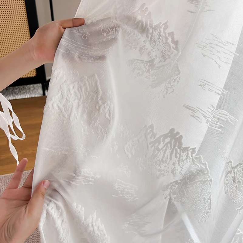 ホワイト系 癒し効果 さわやかな感じ 立体感デザイン 透けにくい 昼夜目隠し プライバシー保護 採光 UVカット オーダー レースカーテン 2倍ヒダ