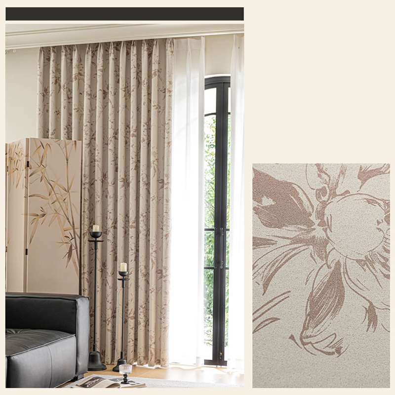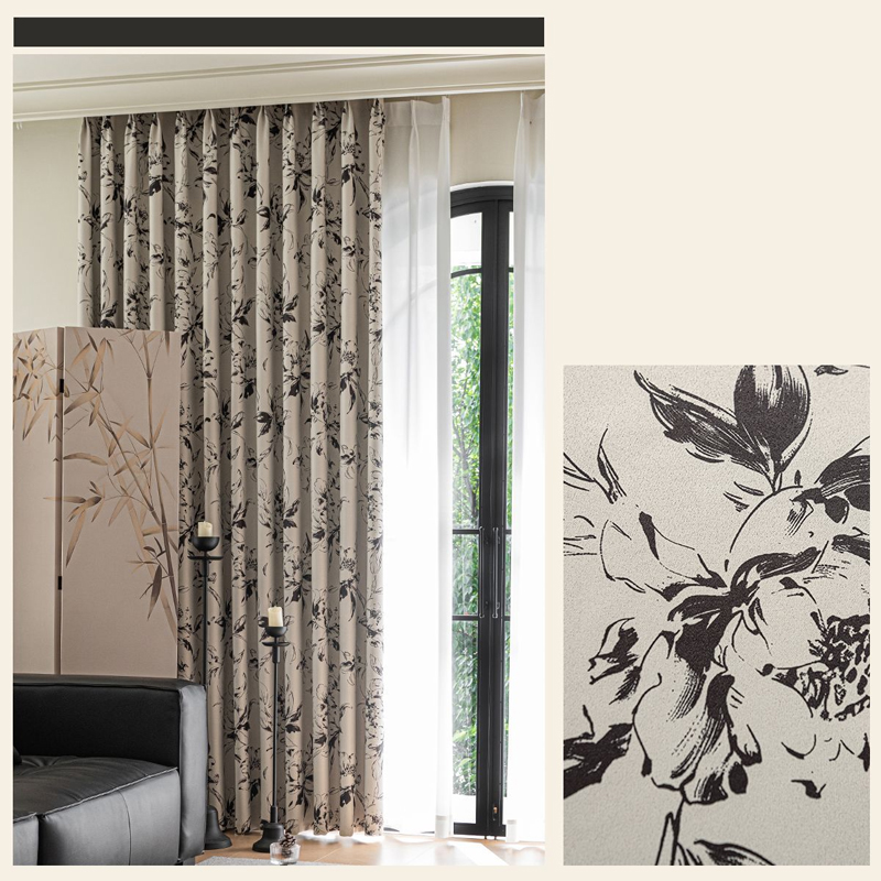 高級感 レトロ風 花柄 癒し効果 精密縫製 品質重視 遮光1級 完全遮光カーテン 防寒 断熱 保温 冷暖房効率UP 節電 防音 安眠 オーダー ドレープ カーテン 2倍ヒダ