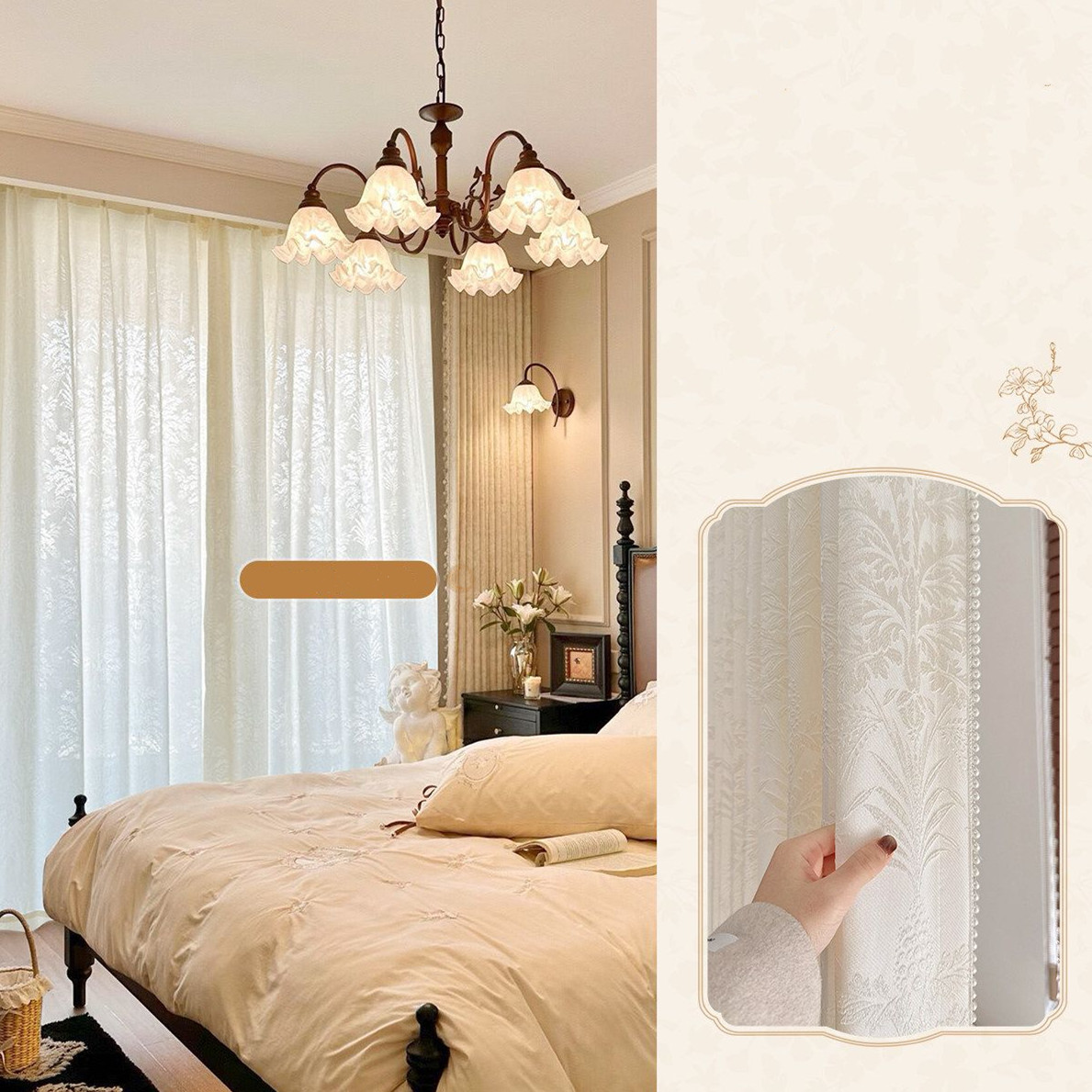 フランス風 優雅 立体感 花柄 ボタニカル柄 ジャカード加工 遮像 花粉対策 昼夜目隠し 自然光の調整 UVカット オーダー レースカーテン 2倍ヒダ
