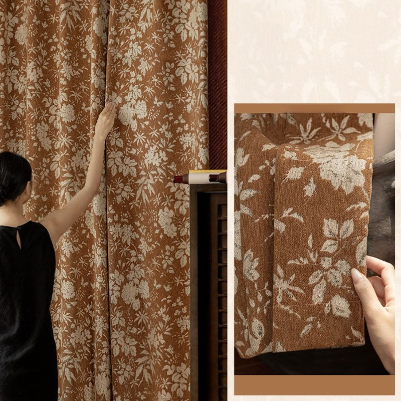 新居 癒し効果 高級 レトロ風 北欧 精密縫製 立体感 花柄デザイン 1cm単位 オーダー 遮光2級 防寒 断熱 保温 冷暖房効率UP ドレープ カーテン 2倍ヒダ