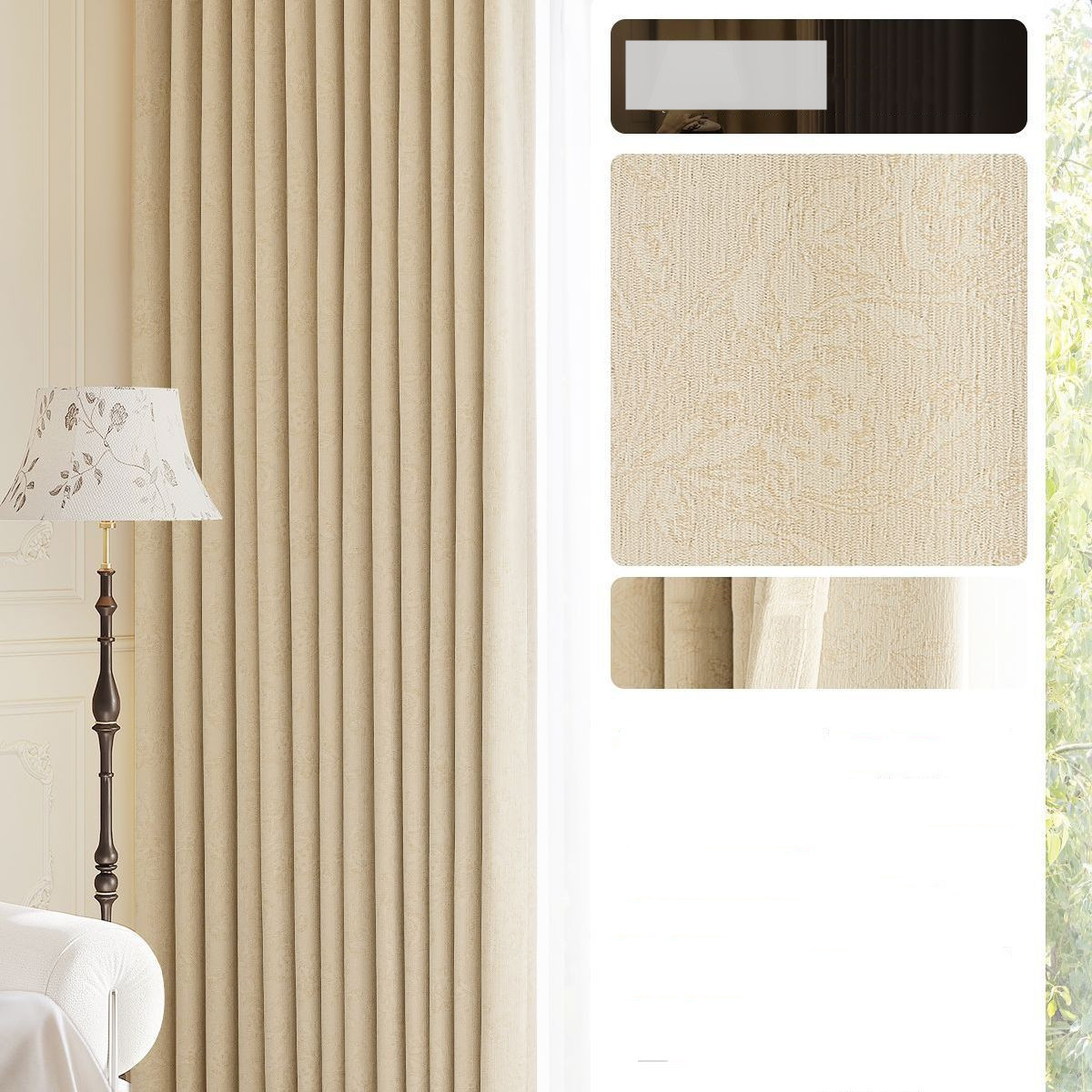 フランス風 優雅 5色展開 花柄デザイン ジャカード加工 2級遮光 防音遮音 断熱防寒 節電対策 優れた垂れ感 冷暖房効率UP ドレープカーテン 2倍ヒダ