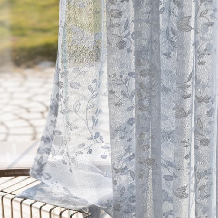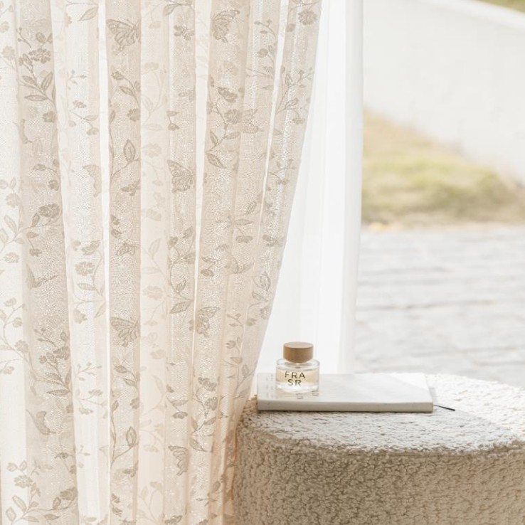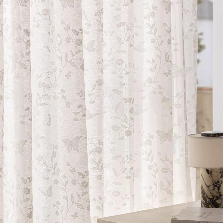 ロマンチックな雰囲気 3色展開 部屋が明るく 圧迫感なし 花柄 蝶柄 ジャカード加工 UVカット 採光 遮像 昼夜目隠し 自然光の調整 レースカーテン 2倍ヒダ