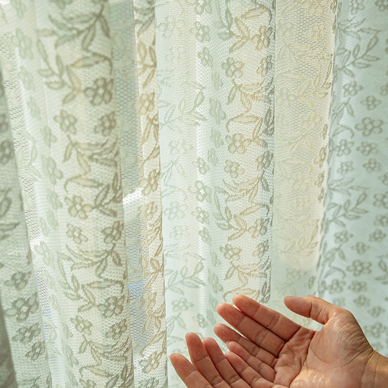 高品質 優雅 雰囲気が明るい 花柄 ボタニカル柄 コスパ最強 花粉対策 採光 清潔感 光を和らげる 見えにくい 昼夜目隠し UVカット レースカーテン 2倍ヒダ