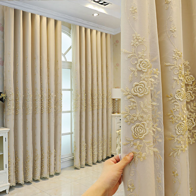 おしゃれ 二重カーテン 一体型 精密刺繍デザイン 3色選べる 1級遮光 断熱保温 2倍ヒダ