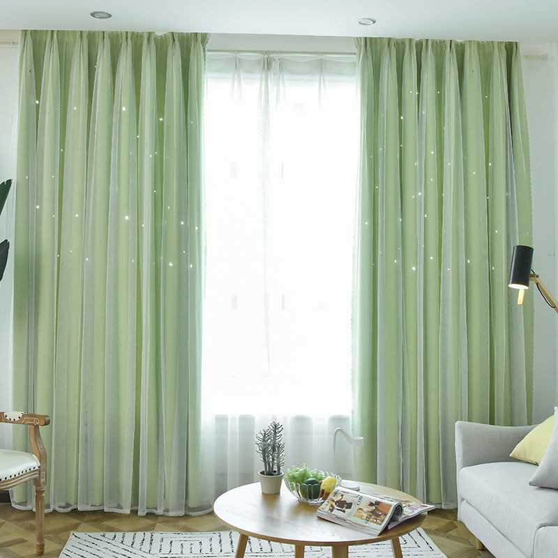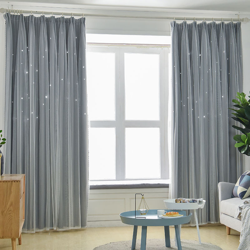 【遮光カーテン・遮光1級】おしゃれ 絶対可愛い キラキラ姫系 透かし彫り星柄 遮光1級 遮熱保温 一体型カーテン 2倍ヒダ