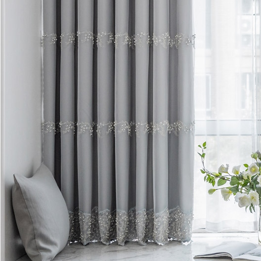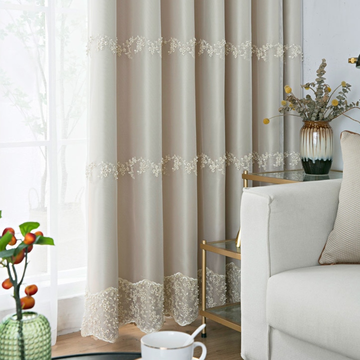 いい垂れ感 おしゃれ 遮光カーテン 遮熱保温 優しい色合い ビーズ ロマンチックなドレープとレース一体型カーテン 遮光2級 2倍ヒダ