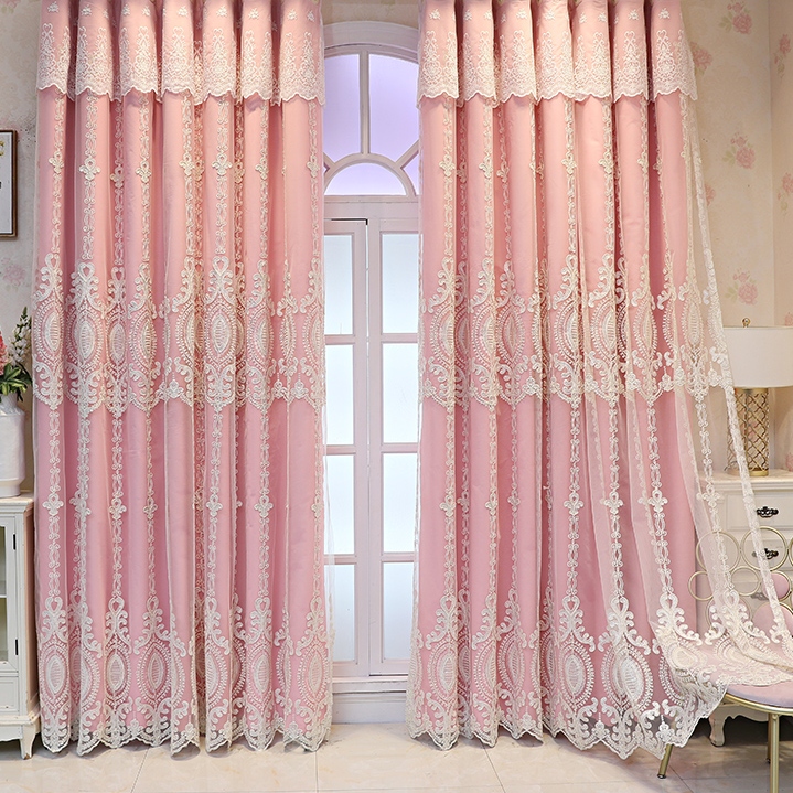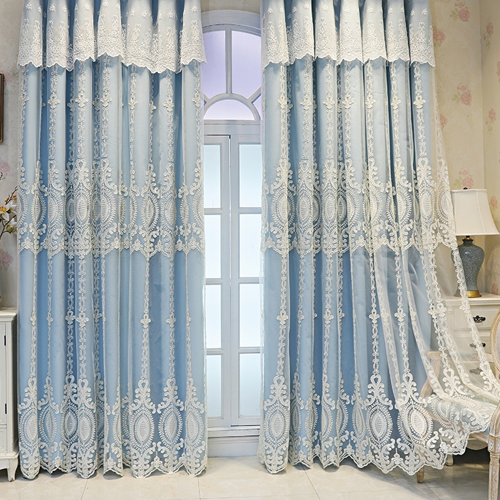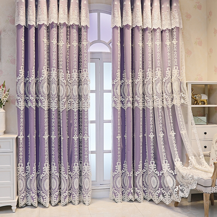 おしゃれ 高級感がある柄 二重カーテン 一体型 精密刺繍デザイン 5色選べる 1級遮光 断熱保温 2倍ヒダ