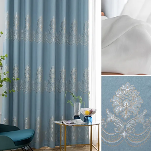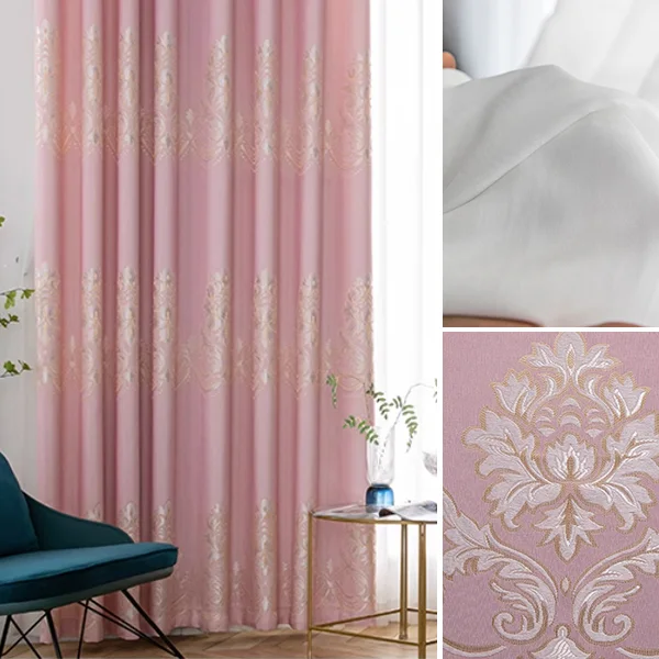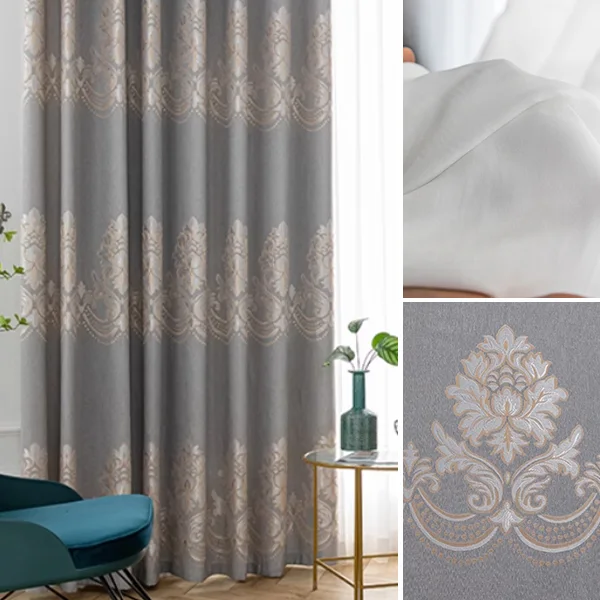 【2枚組】おすすめ 北欧 ジャガード お花 おしゃれ カーテン 遮光1級 厚手 合わせやすい ドレープ1枚&レース1枚 カーテンセット 2倍ヒダ