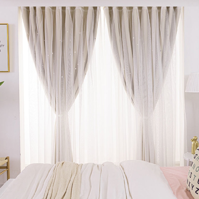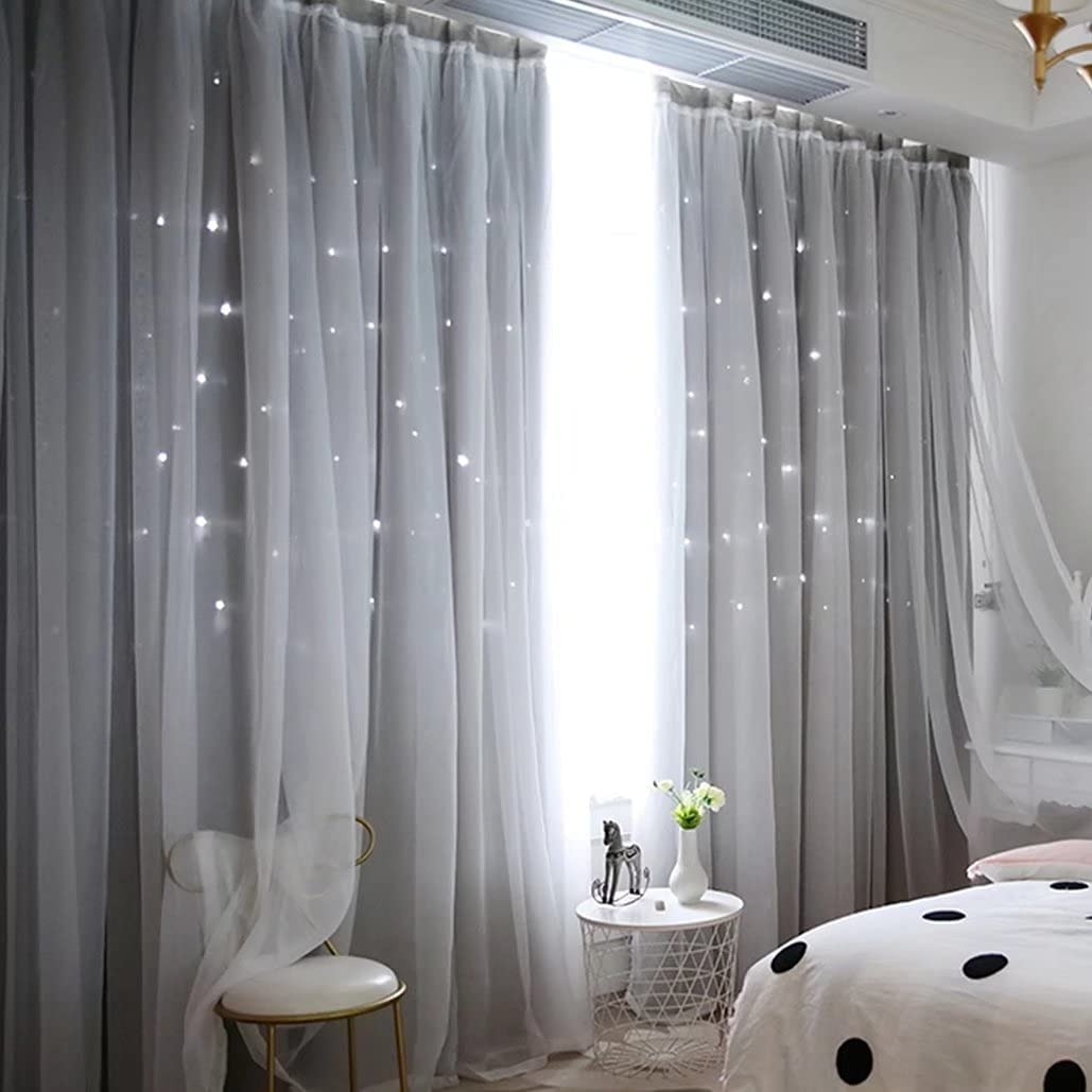 【一体型】おしゃれ 無地 透かし彫り 星 ほし穴 遮光2級 断熱 防音 遮熱 カーテン2倍ヒダ