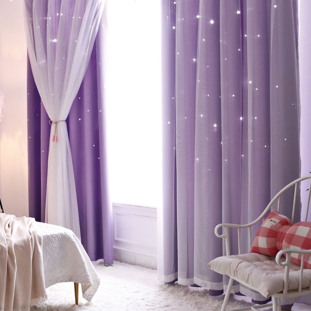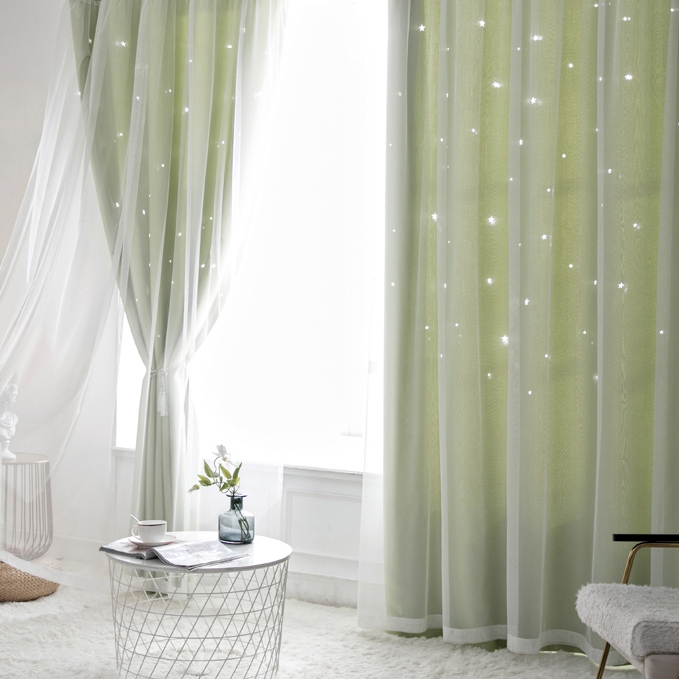 ins超人気 キラキラ透かし彫り星柄 おしゃれ 2級遮光 一体型カーテン 2倍ヒダ