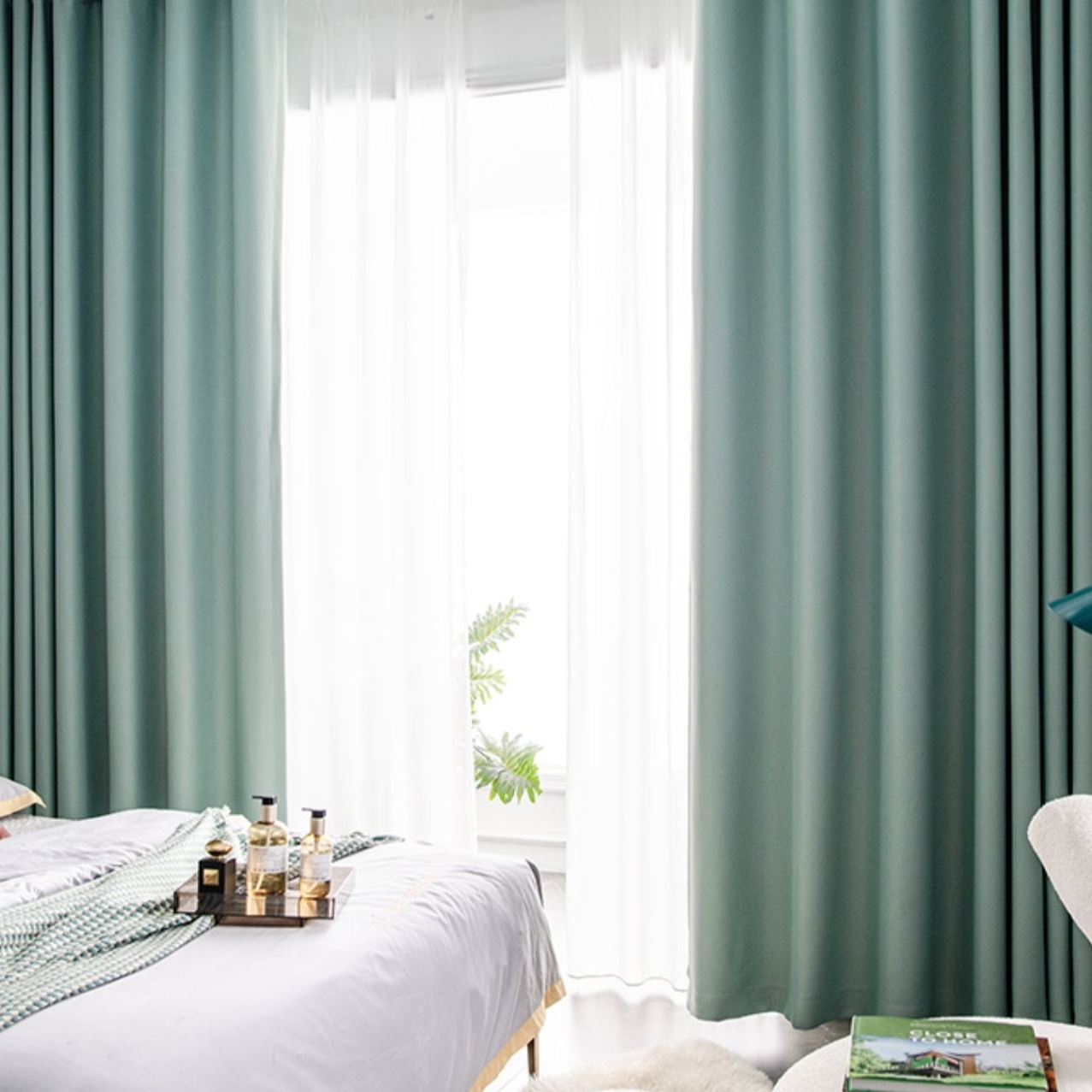 【2枚組】9色展開 上質でさわやかな生地 おしゃれ 無地 遮光1級 断熱防音 ドレープ1枚+レース1枚 セットカーテン カーテン 2倍ヒダ