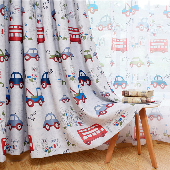 【2枚組】 おしゃれ カーテン 車 プリント 可愛い 子供部屋 ドレープxレース カーテン セット 遮光寝室 カーテン 2倍ヒダ