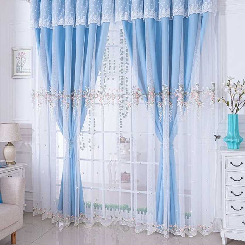 おしゃれ ゴージャス 華やか 繊細で絶妙な刺繍 レース付き 1級遮光 5色 遮熱防寒 防音保温 ドレープ+レース 一体型カーテン 2倍ヒダ