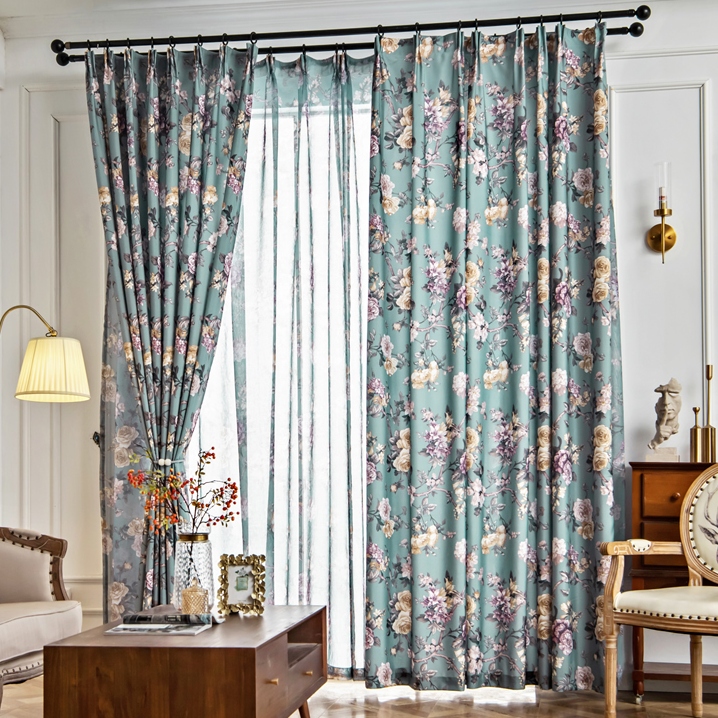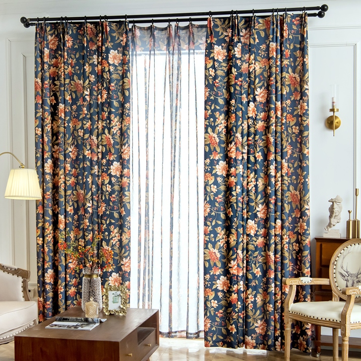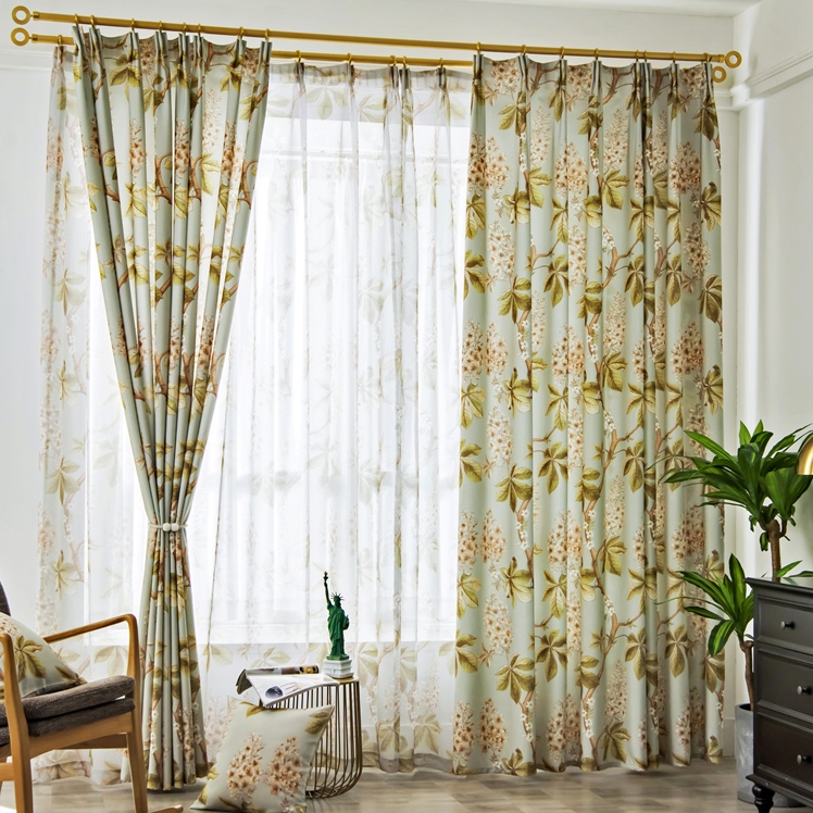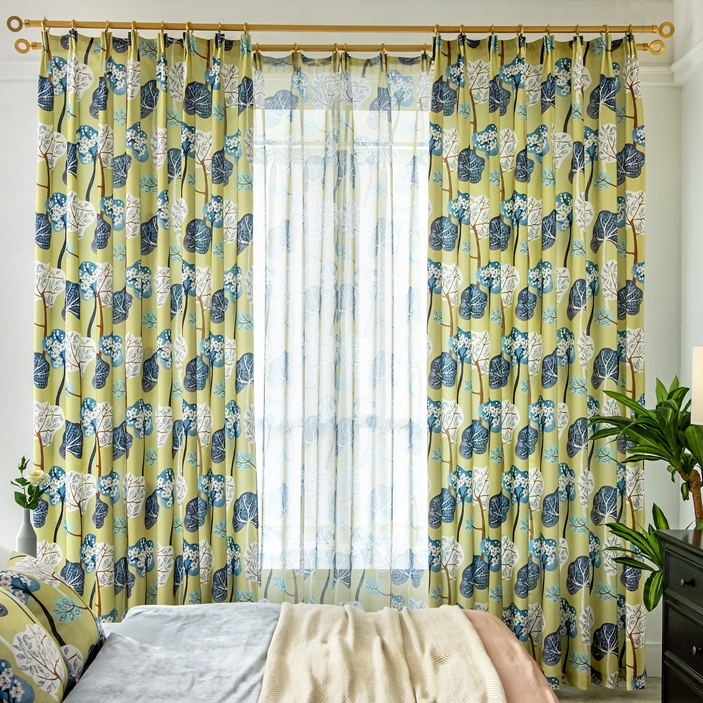【2枚組】9タイプ 花柄 ボタニカル 田舎風 おしゃれ 爽やかな部屋雰囲気 遮光 遮熱保温 ドレープ+レース カーテン 2倍ヒダ