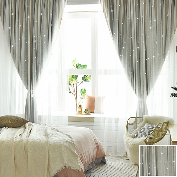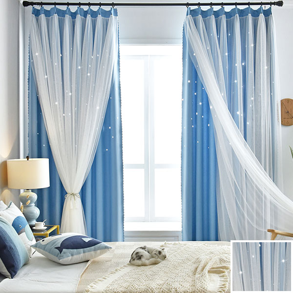 【一体型】6色 姫系 お星さま 明るい色合いのドレープとレース一体型カーテン 遮光2級 2倍ヒダ