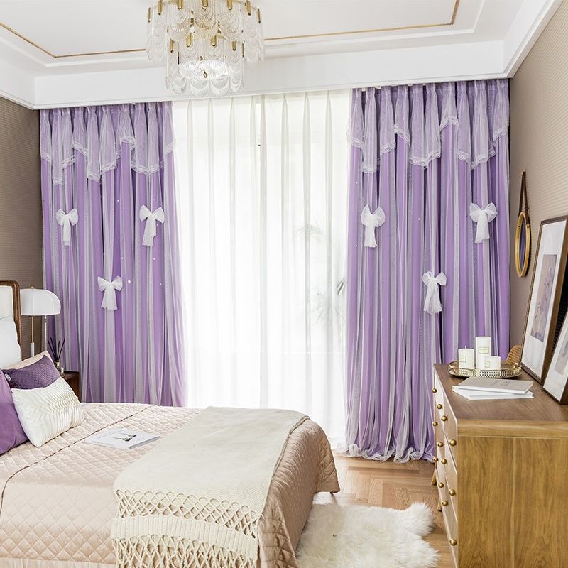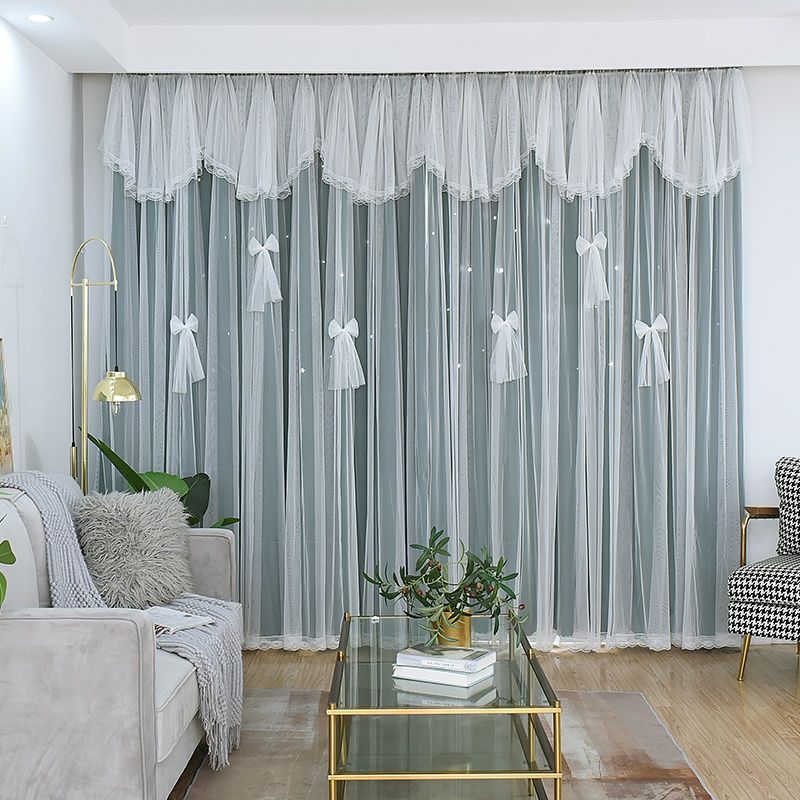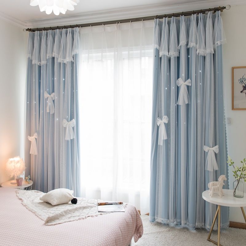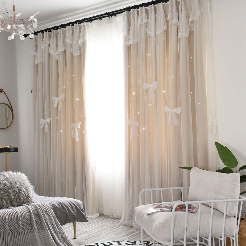 【一体型】9色 姫系 ロマンチック お星さまドレープとレース一体型カーテン 遮光3級 2倍ヒダ