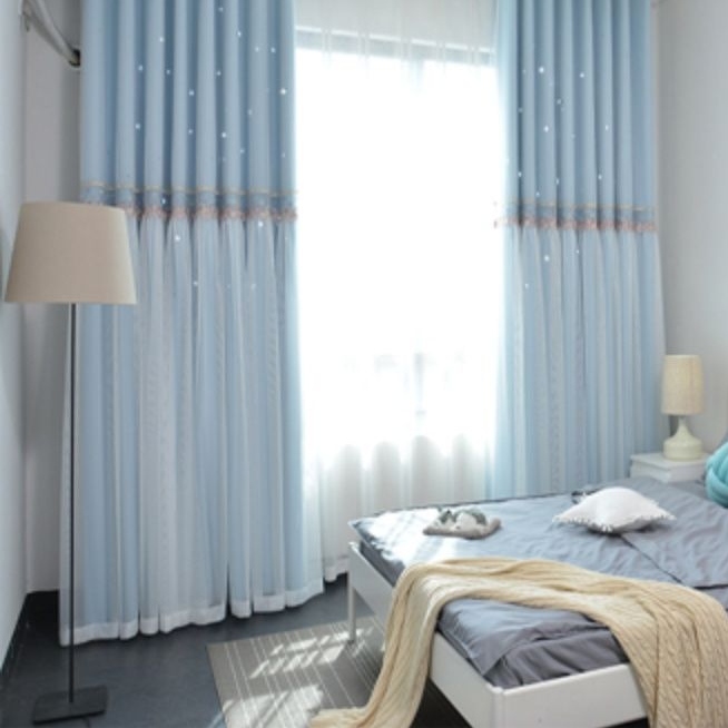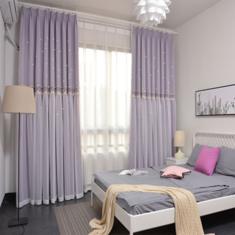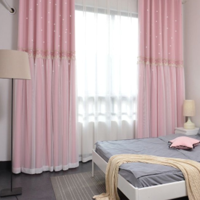 insで大人気 おしゃれ 可愛い星柄のデザイン 透かし彫り 大人気姫系刺繍 遮光 ドレープ+レース 一体型カーテン 2倍ヒダ