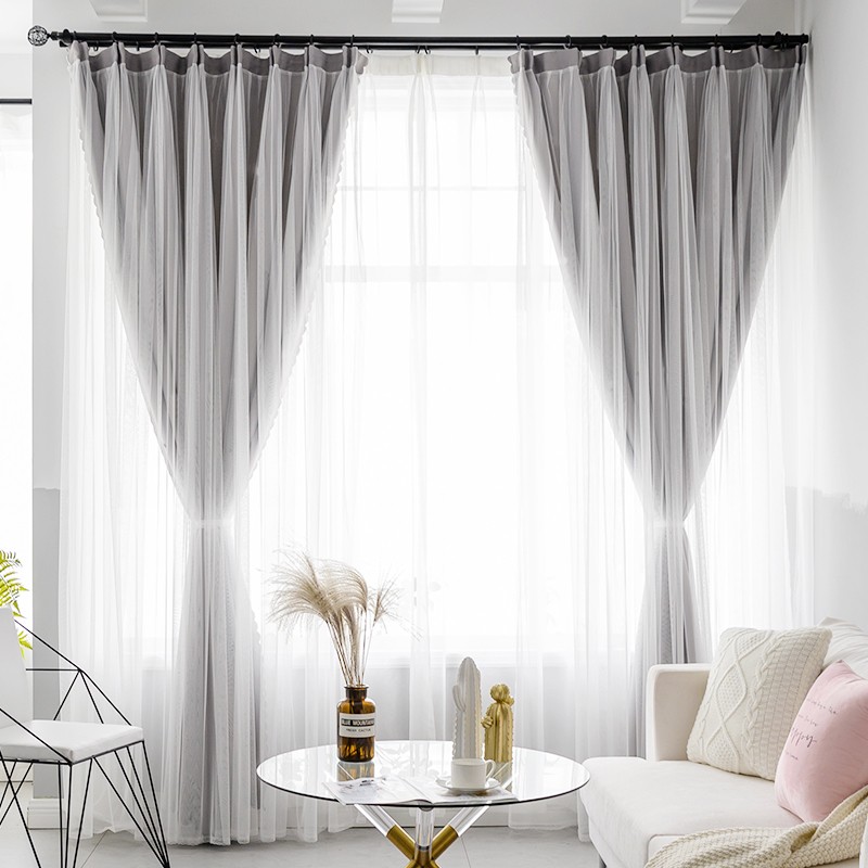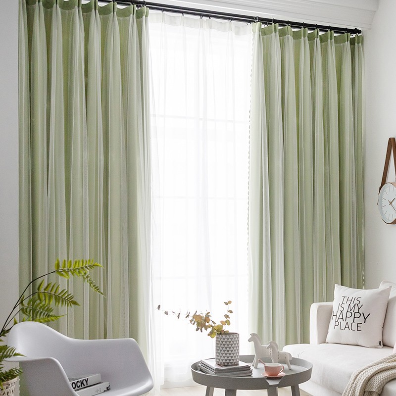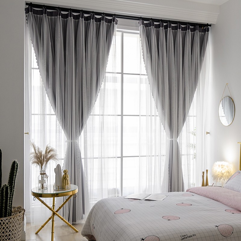 【一体型】 全7色 韓国系 エレガント 無地 遮光 可愛い 姫 女性部屋 子供部屋 二重カーテン おしゃれ カーテン 2倍ヒダ