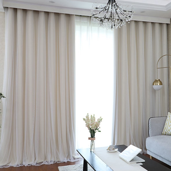 【遮光カーテン・遮光1級】おしゃれ 北欧 シンプルなデザイン 無地 遮光1級 断熱 ドレープ&レース 一体型カーテン 2倍ヒダ