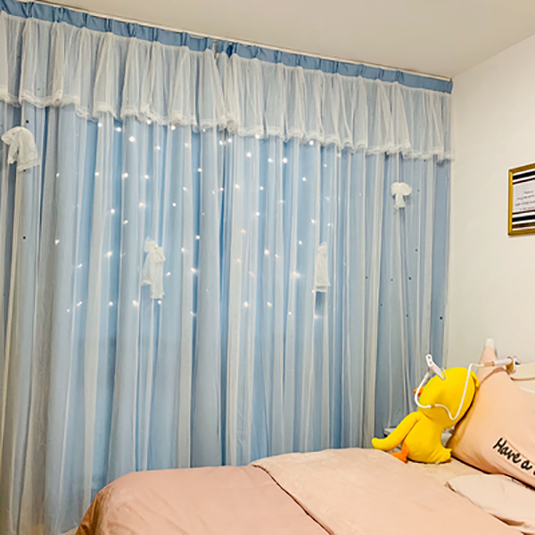 【一体型】キラキラ透かし彫り星柄 ドレープとレース一体型カーテン 遮光1級 2倍ヒダ