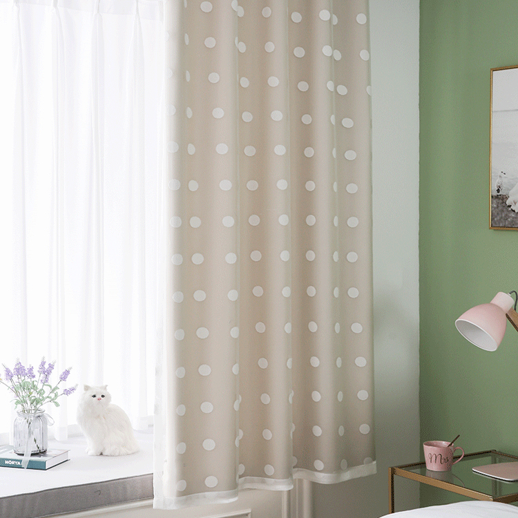 落ち着く色合いで優しい雰囲気 無地 2級遮光 ドレープ&ドット柄レース一体型カーテン 2倍ヒダ
